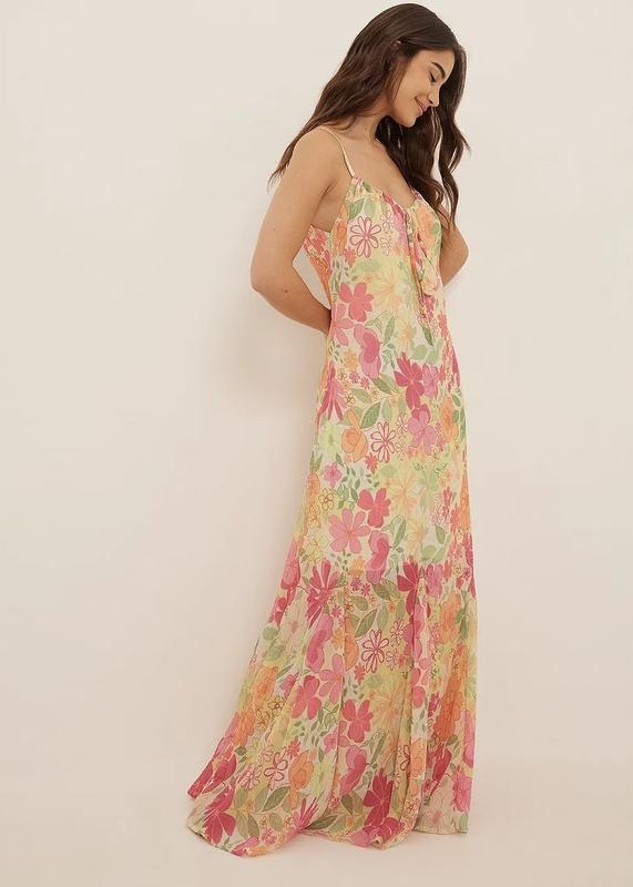 П: Стильное, нежное, яркое платье макси на бретелях в цветочный принт с фактурным низом, ткань жатка (типа мелкого плиссе) платье на подкладке до колена. Бретели и декольте регулируются. Коллекция 2023р. Все вещи новые и с оригинальными бирками. Дополнительные фото, фото на себе и замеры скинем в частные уведомления.