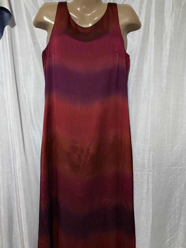Платье, сарафан на подкладке, простой крой, силуэт прямой, полуокруглый вырез горловины. Замеры: длина - 127см., плечи - 32см., ПОГ - 49см., ПОТ - 44см., ПОБ - 56см