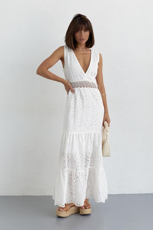Длинное платье из прошвы и кружевом на талии