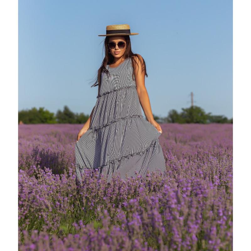 Черно-белый полосатый сарафан с рюшами выполненный из софта. Модель без рукавов с полукруглой проймой горловины и ниспадающими воланами. Модель свободного расклешенного кроя без рукавов.Черно-белое повседневное платье-трапеция выполненное из софта с вертикальными полосками. Модель с длиной в пол и полукруглой горловиной декорировано рюшами на стыке ниспадающих воланов.Груди 92 Талия 110 Бедра 140 Длина изделия: 138.ПАРАМЕТРЫ МОДЕЛИ Рост: 170 см Грудь: 82 см Талия: 61 см Бедра: 92 см На модели размер: S Ткань: ряд эластически.Сукня и действительно без преувеличений замечательная! Соответствует всем заявленным параметрам. И фасон, и ткань, и принт - беспроигрышный вариант, чтобы чувствовать себя комфортно и выглядеть непревзойденно в летнюю жаркую погоду)