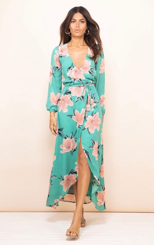 Зеленое платье на запах в цветочный принт dancing leopard, u9 8