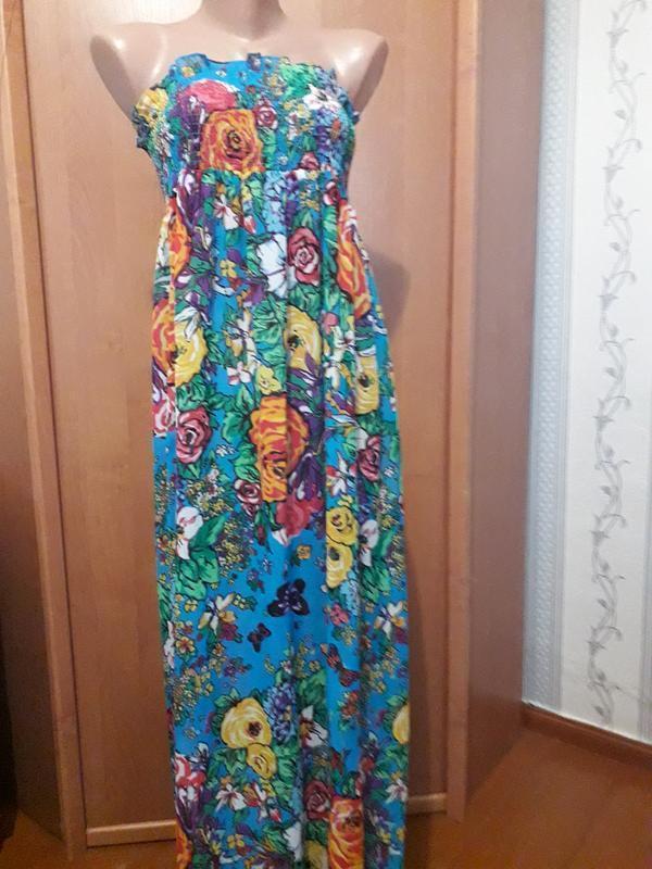 Цветочное долгое платье сарафан резинка бюстье. макси сарафан в цветы