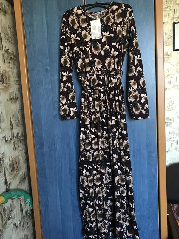 Платье длинное, не тонкое и не толстое, и тёплая осень.Перерезанная талия,меет пасок