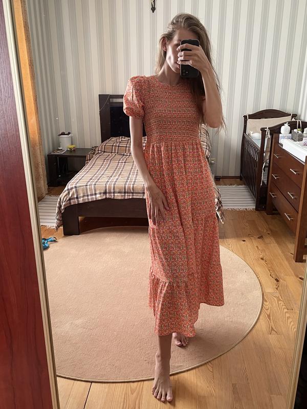 Очаровательное легкое летнее платье. На поясе резинка, которая позволяет подчеркнуть талию