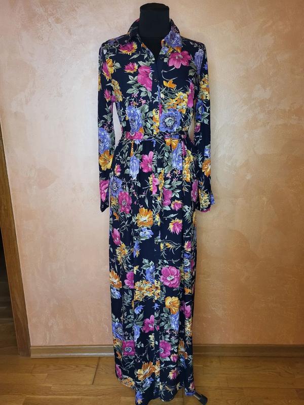 Красивое длинное платье, сверли до низа на пуговицах, под пояс.
