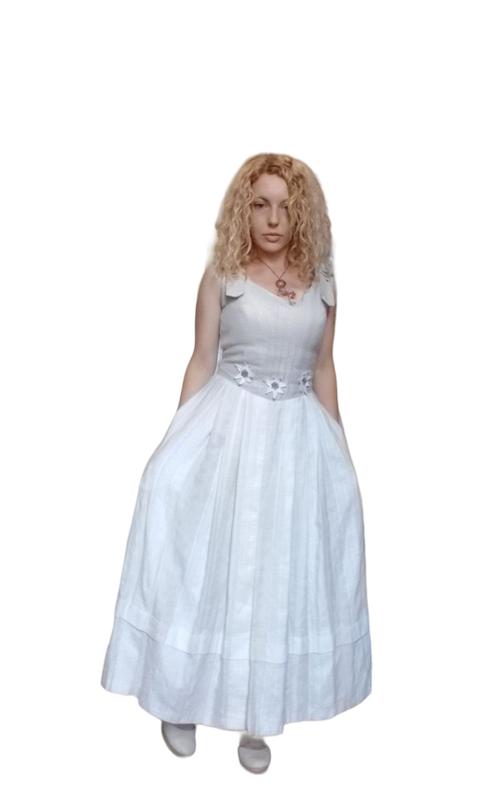 сукня від австралійського дізайнера Мартена Гранта.. Льняна сукня, корсет щильний.з заду замок довгий. з карманами. бретелі -регулюються, юбка пишна. пог 45 см пот 35 см довжина від плеча 124 см.