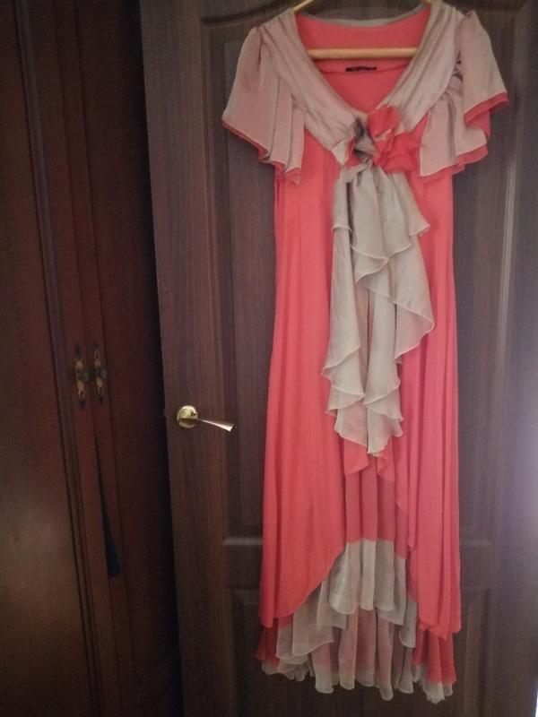 Платье вечернее, ярко розового цвета на подкладке с воланами