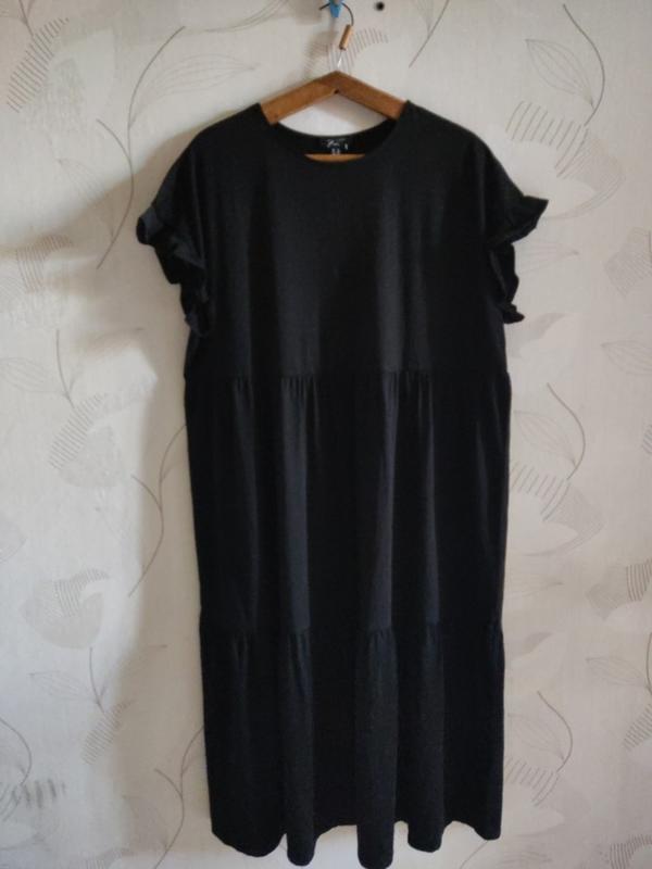 Женское, брендовое платье. Фасон ярусами. Красиво маскирует недостатки фигуры. ПОГ 67, ПОТ 65, ПОБ 82, длина 135.