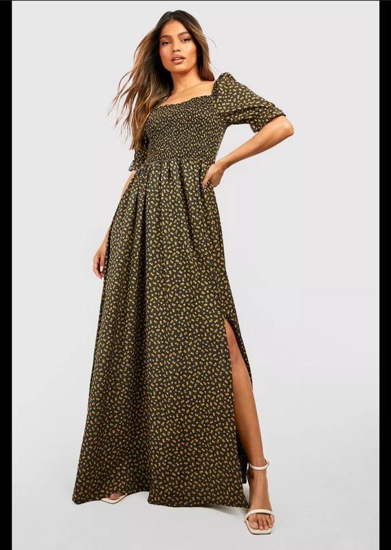 шикарное платье в пол, цветочный принт, перед резинка, рукавчик манжет резинка, впереди небольшой разрезик