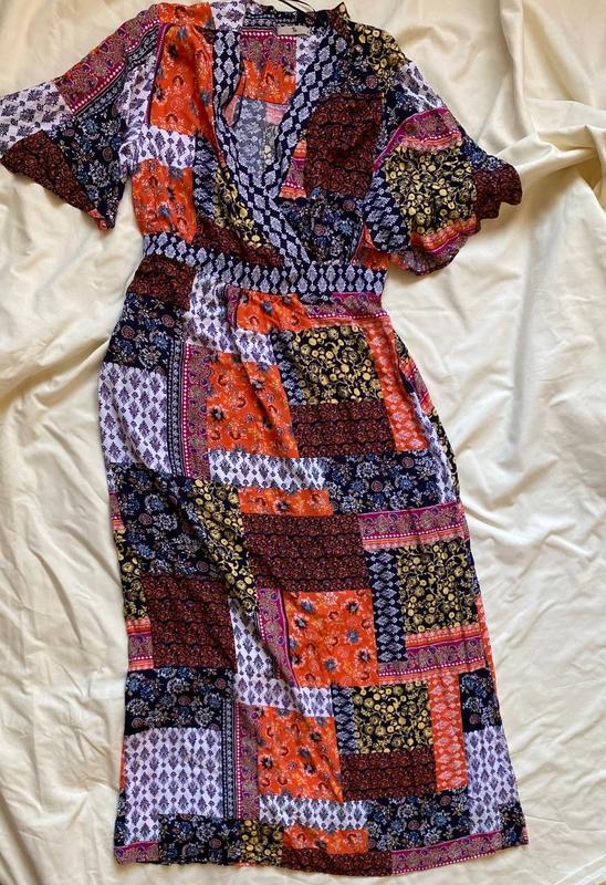 У стилі бохо Віскоза 100% 143 см довжина, по груддях 53см, талія 40си, , довжина рукава 34см, в стегнах 60см, ширина низ 80см 16 розмір на бірці Легка і приємна до тіла,