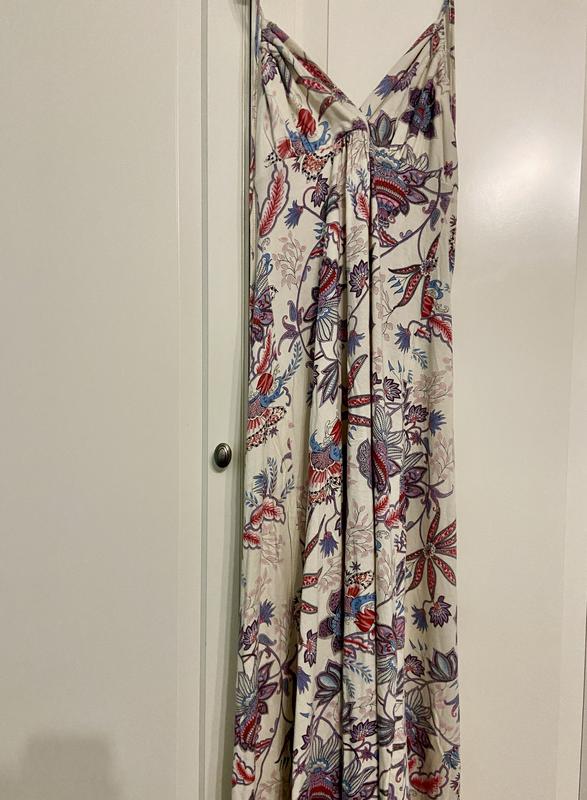 Платье сарафан макси Colin's размер S/M, почти не одевалось, длина общая 116см., материал мягкий эластичный хлопок. Цвет кремовый с абстрактным рисунком. Свободный крой, вверху на завязках, подойдет как под босоножки так и под спортивный вид обуви. Без дефектов.