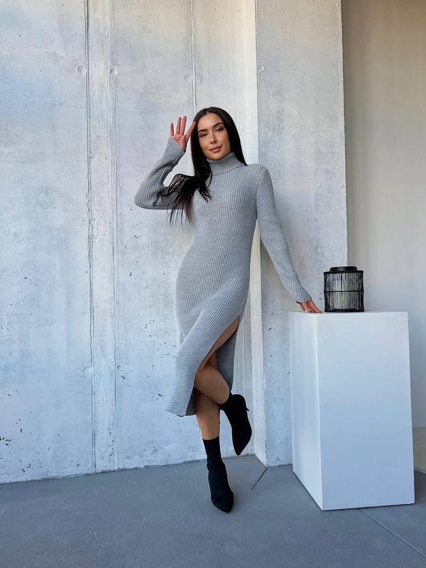 Вязаное платье- гольф в длине меди😍 Модель: 117 Размер: oversize 42/48 Двойная вязка Акрил+вовна Цвета: черный, пудра, серый, карамель, бутылка 💶Цена: 670 грн 🎀 Платье с высоким воротником. Изделие выполнено из мягкой, приятной к телу пряжи с содержанием шерсти и акрила. Длина миди. Крой приталенный. Длинные узкие рукава. С боку декоративный разрез 💕