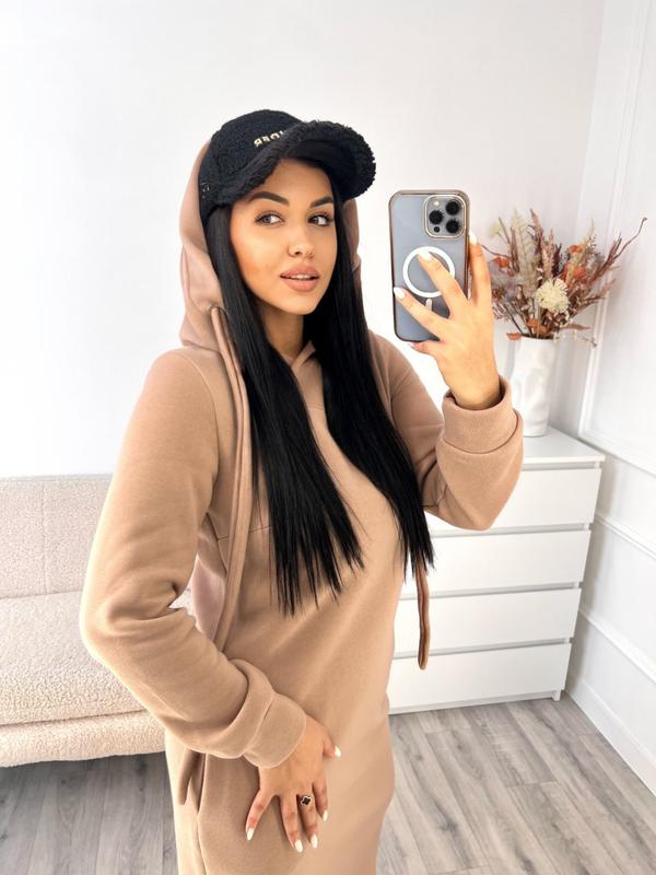 Платье худи Платье приталенного силуэта из трехнитки с начесом отличного качества. Глубокий капюшон и боковые карманы, рукава на манжете. Тепло, уютно и невероятно красиво. ▪️Цвета: черный, капучино, аметист и Сократ ▪️Размеры: 48-50, 52-54, 56-58, 60-62, 64-66