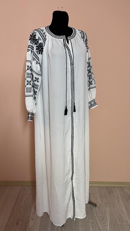 Новое,100% полиэстр Без определенного размера Подойдет от хs-xxl Хорошее качество, можно подобрать пояс,стиль бохо Длинное До самого низу на ґудзики Замеры: длина-148,рукав реглан-70, поб-68,пог-61