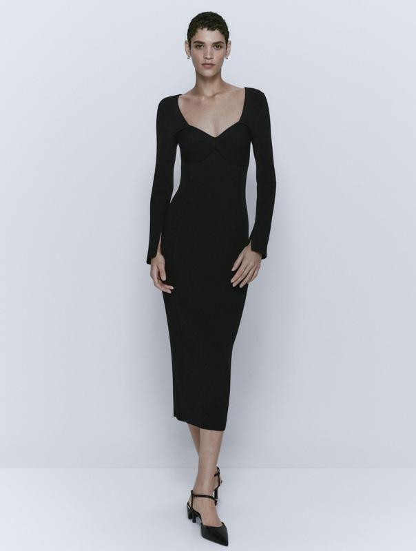 Сукня Massimo Dutti. Размер S. Состав: 56% вискоза, 44% полиамид. Замеры: объем груди 70-90 см, объём талии 66-84 см, объём бёдер 80-100 см, длина 121 см, длина рукава 63 см