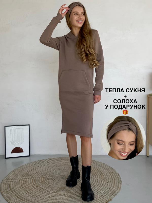Теплое платье-солоха в подарок 🎁. Платье худи на флисе с карманом и разрезами по бокам. Манжеты на резинке. Ткань тянется, не кошлатится. Собственное производство- качество💪. ✅ Есть наложенный платеж с предоплатой за почту 🔄обмен/ возврат без проблем 🔖S-M,L-XL,2XL-3XL,4XL-5XL(сбрасывайте замеры, охотно поможем с выбором) 🧶турецкая тринитка на флисе «Люкс Пенье»-85% хлопок, 15% эластан 📐 Размерная сетка: 42-44 (S-M): обхват груди – 82-94см, обхват бедер – 89-96 см. 46-48 (L-XL): обхват груди – 94-100 см, обхват бедер – 98-110 см . 50-52 (2XL-3XL): обхват груди – 101-114 см, обхват бедер – 111-120 см. 54-56 (4XL-5XL): обхват груди – 116-124 см, обхват бедер – 121-128 см. Приведенные параметры условны, поскольку во многом зависят от фасона изделия,степени растяжимости ткани,особенностей фигуры. 👘 Параметры платья в разложенном виде: 42-44 (S-M): обхват груди - 45 см, обхват бедер - 45 см, длина - 102/106, длина рукава от горла - 71 см , ширина рукава - 17 см. 46-48 (L-XL): обхват груди - 50 см, обхват бедер - 50 см, длина - 106/109 см, длина рукава от горла - 72 см, ширина рукава - 18 см. 50-52 (2XL-3XL): обхват груди - 55 см, обхват бедер - 55 см, длина - 106/110 см, длина рукава от горла - 73 см, ширина рукава - 20 см.< 54-56 (4XL-5XL): обхват груди - 62 см, обхват бедер - 62 см, длина - 106/110 см, длина рукава от горла - 73см, ширина рукава - 22 см. Погрешность замеров может составлять +/- 1-2 см, это зависит от степени растяжимости ткани. 🧍♀️Параметры фотомодели: рост – 172 см, ОГ – 82 см, ОТ – 60 см, ОБ – 90 см. На фото показан размер: 42-44 (S-M). 🚛Доставка и оплата💵: 1️⃣Оформление через Шафу: -безопасная оплата -продавцу на расчетный счет ФОП -наложенный платеж(с предоплатой за почту 150 грн) 2️⃣Оформление напрямую: -полная оплата на расчётный счет ФОП -наложенный платеж(с предоплатой за почту 150 грн)