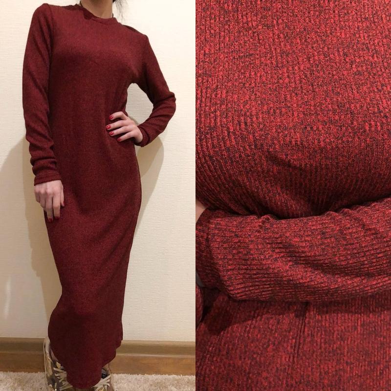 Длинное платье из приятного к телу трикотажа рубчик зерна. Хорошо тянется. В наличии цвет бордо и синий. Размеры: с, м, л.