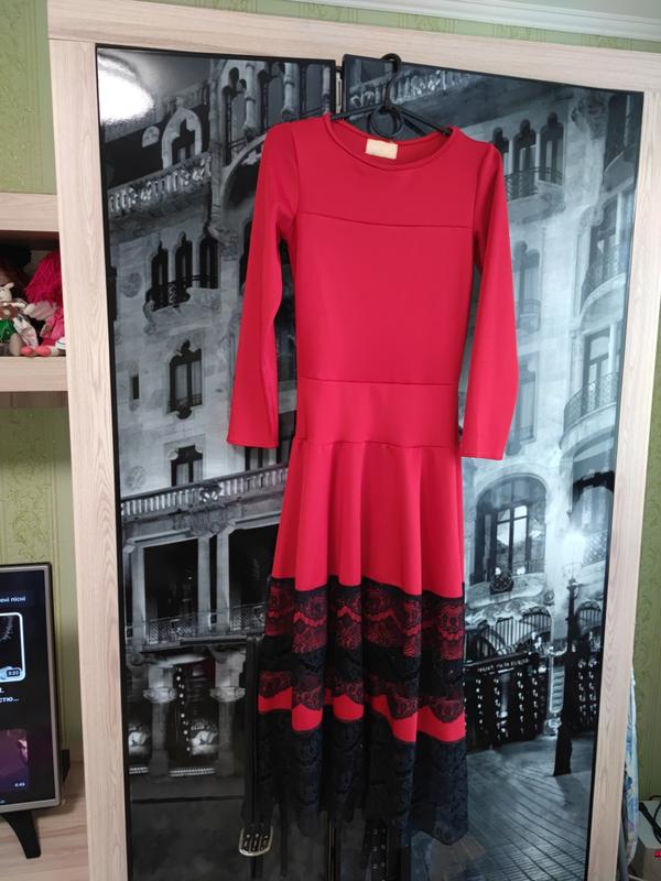 Длинное красное платье с кружевом, размер С, заниженная талия