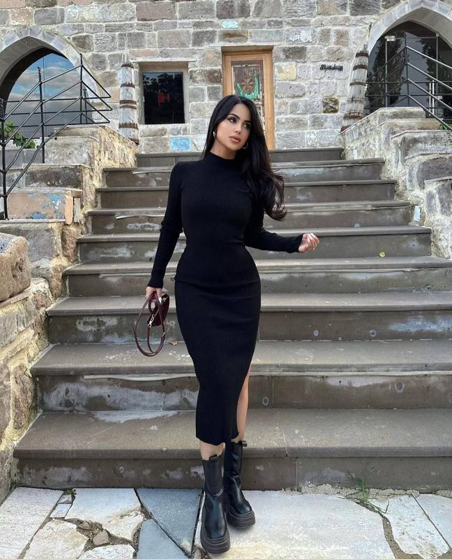 🔺Платье с разрезом модель 2319 ткань : рубчик Турция цвет: черный размер: 42-46 (one size) Неизменная классика Платье гольфик в длине миди с разрезом. Идеальная посадка. Ткань хорошо тянется. Разрез сбоку. Параметры: ОГ: 85-95 см ОС: 90-100 см Длина 110 см