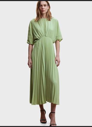 платье плиссе цвет фисташка, рукавчик спущен