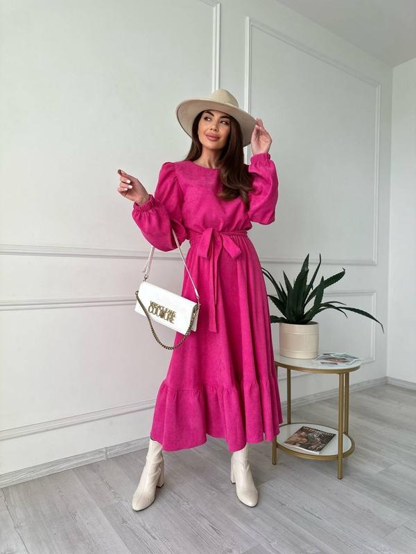 Трендовое платье миди Мод 101 ▫️Размеры:42-44,46-48,50-52 ▫️Ткань-вельвет на х<unk> б основе Описание: 🎀длина миди,120 см; 🎀рукав фонарик На талии резинка, одевается под пояс 📍 Цена: 800 грн💰