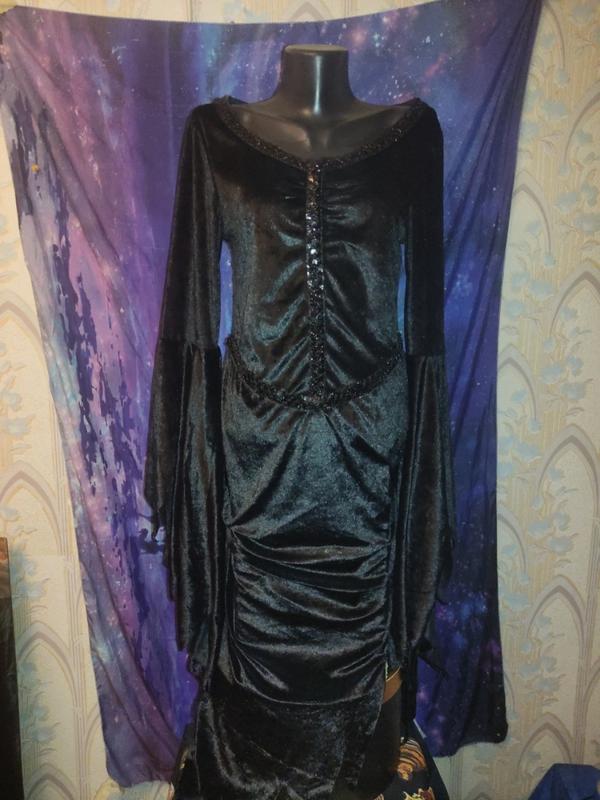 Бархатное велюровое готическое ведьмское вампирское платье с шикарными рукавами