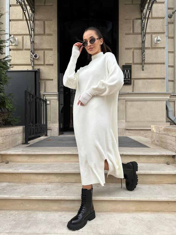 Женское теплое длинное платье с горловиной вязкой трикотаж туречна