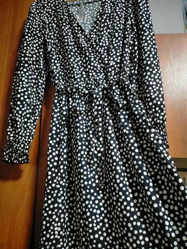 красивое платье черно- белый горошек, длина платья 1,19 см, длина рукава 63 см,талия 37 см вискоза, размер м.новое.