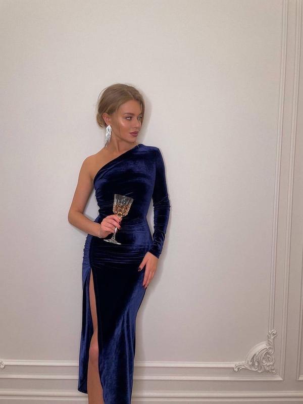 Сукня арт. rkot. 428 Очень красивое и изысканное платье Размеры: 42-44 и 44-46 Ткань: корейский стрейч бархат Цвета: красный, черный и синий Вишукана зборка по ніжці. Модель длины миди, открытая ключница, выглядит очень красиво, а разрез на ножке создает эффект длинных и строгих ног. Отличное качество. Цена 680 грн