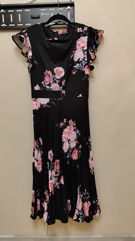 Игривое платье в розовые цветы. Юбка-плиссе.На спинке замочек.Пог-45,Пот-35,длина-115.