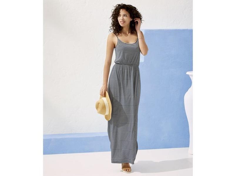 Длинное макси платье в пол в полоску esmara Новое, сток, бумажной бирки нет, только пластиковый держатель Это сток, не секонд, запах секонда нет! Размер указанный L 44-46 евро, подойдет примерно на 48-52 укр.размер, но лучше ориентируйтесь на замеры Разрез с одной стороны (левой) Замеры вещи: Полуобхват груди - 48 см (тянется до 61 см.) Полуобхват талии (на резинке) - 39 см (тянется до 66 см) Полуобхват бедер - 58 см (тянется до 70 см) Высота разреза с левой стороны - 55 см Длина платья от плечевого шва до линии талии - 45 см. Длина платья вместе с бретелями – 143 см. .................................... Состав: 65% полиэстер, 35% вискоза .................................. Даний товар безпечною оплатою не відправляємо. Возврата и обмена нет! ......................................... При покупке 2-х и больше вещей - скидка 10% *** Если Вы делаете заказ через кнопку "Купить" скидку сделать не смогу, поскольку в этом случае сайт снимает с меня процент за продажу с полной стоимости вещи, указанной в заказе. Для получения скидки делаете заказ через кнопку "Задать вопрос"! ........................... Доставка: Отправка после 100% предоплаты на карту. Доставка: Новая Почта, Укрпочта (оплата при получении) на следующий день после оплаты (кроме выходных). ВОЗВРАТА И ОБМЕНА НЕТ! В каждом объявлении есть детальное описание и замеры вещи. Как сядет на Вас вещь, я предугадать не могу, поэтому делайте заказ обдуманно, сверяйте свои параметры с указанными замерами. Я с удовольствием отвечу на все интересующие вопросы и предоставлю дополнительные замеры и фото ДО оплаты и отправки товара