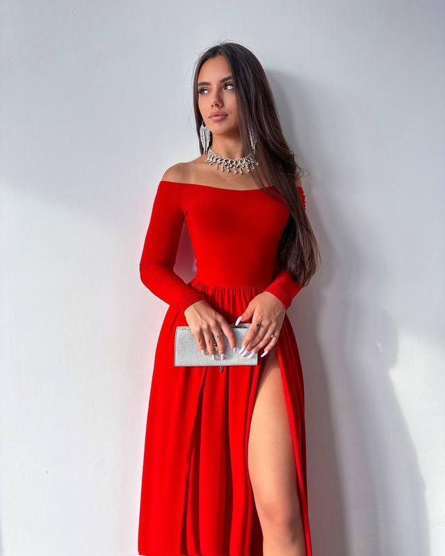 Сукня 👑 Мод: ch 527 Тканина: трикотаж масло Размеры: 42-44, 46-48 Цвета: черный, красный Отличное качество. Фото выполнены в живую. Роскошное платье с разрезами и открытыми плечами. В этом платье вы точно будете в центре внимания 😍