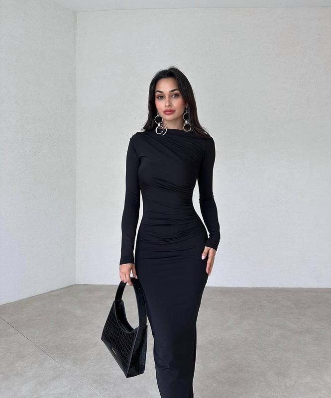 Елегантна модель для вечірнього виходу або свята Приталена сукня з драпіруванням, ідеальна посадка. довжина міді матеріал - мікродайвінг розміри S M L мих