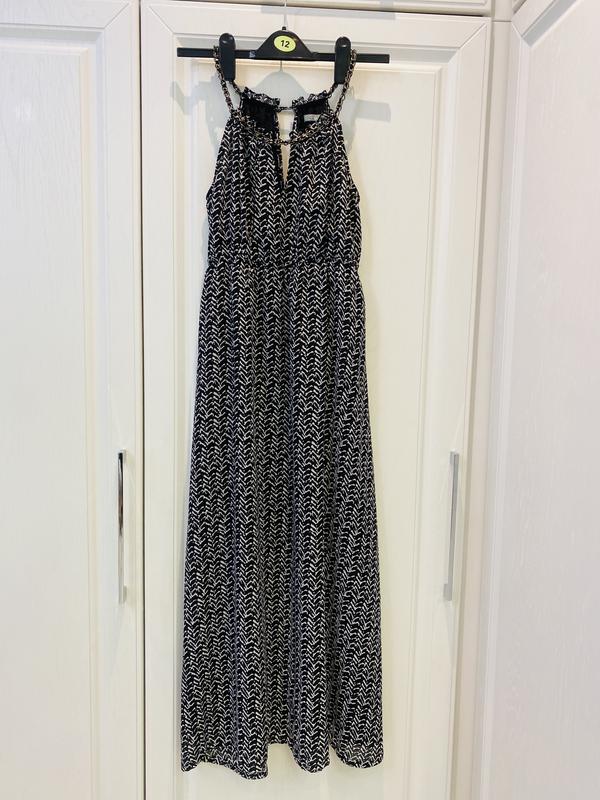 Платье длинное на разные события с подкладкой из черного шифона. Тканина по типу цупкого шифону ,не мнеться ,не кошлатиться .Шлейки ланцюжки Длина 131 см ПОГ 48 см ПОТ 36 см (резинка) Состояние новой вещи