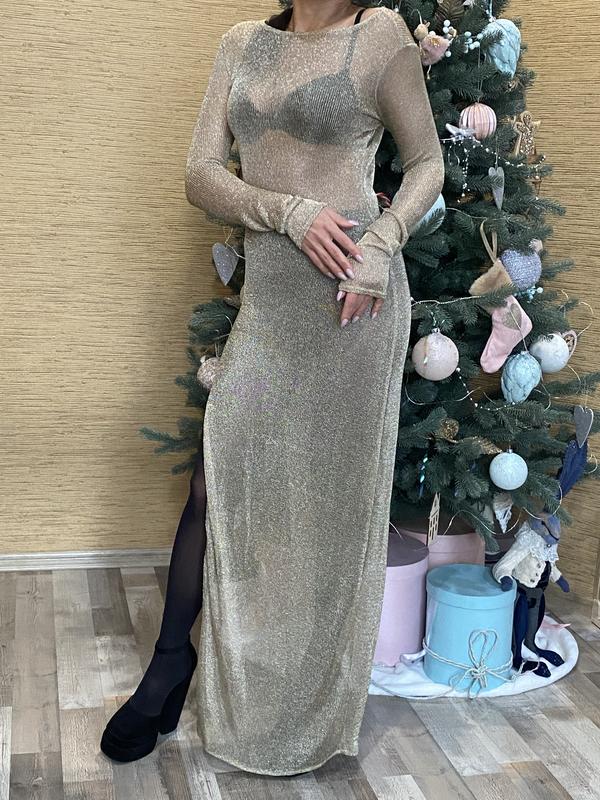Платье прозрачное, очень крутое, мае несколько зацепок, но их не очень заметно (которые можно исправить). Можно надевать поверх платья мини или красивого белья. Подойдет на размер xs-m (универсальная)
