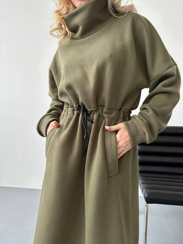 Фото реал✅ Теплое платье на флисе имеет идеальную посадку, на талии изюминка в виде кулиски, которая очень красиво подчеркнет твою фигуру 😍 Сукня Мод: br 300 Размер: 42-46,48-52 Ткань: тренит на флисе Цвета: черный, молочный, хаки, синий, графит Качество отличное 🔥