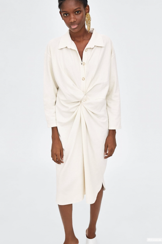 Трикотажное платье - рубашка оригинал,мелкая вязка. цвет молочный, оверсайз, указан м, подойдет и на больше. В складочках есть пятнышко, вовсе не видно при носке, при желание можно вывести. Длина 106 см Пог 53 Рукав от горла 63 Хорошо тянется