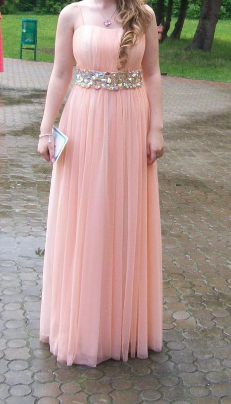 Красивое выпускное платье на девочку до 168 см нежного персикового цвета, пояс очень красиво блестит, было одето только один раз