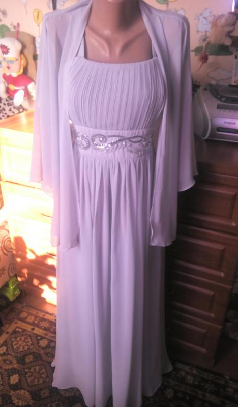 Ідеальне для будь-якого урочистого випадку-Шикарне шифонове плаття на довгій підкладці,ліф з підтримкою для грудей,передбачений носити без бюстгальтера, на поясі вишивка ручної роботи,спідниця пишна і красива+накидка. Було одягнене один раз на торжество.Ідеальний стан,без дефектів.Купувалося за 3800 грн. Піде на 50-52р,зріст не нижче 172(якщо тільки високий каблук). Орієнтуйтеся по замірах: Довжина по боковому шву від пахви 130 Загальна довжина лямки 36 Довжина верхньої частини від ліфа до пояса 16(завищена талія) Довжина вишитої частини поясу 7 Довжина спідниці від пояса до низу 111 ПОГ 49(мах 53) ПІТ 44(мах 46). Довжина накидки 63,ширина 66,рукав від горловини 57.