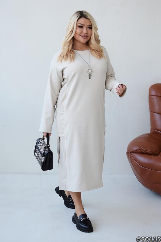 Тканина Італійський трикотаж+еко шкіра Колір Бежевий, чорний Розмір на фото 50-52 Параметри моделі 106-80-107 -Зріст моделі 163 Заміри готового виробу розмір 50-52: ОГ - 116 см; ОС - 116 см; Довжина рукава - 74 см; Довжина - 117 см; Заміри готового виробу розмір 54-56: ОГ - 124 см; ОС - 124 см; Довжина рукава - 74 см; Довжина - 118 см; Заміри готового виробу розмір 58-60: ОГ - 132 см; ОС - 132 см; Довжина рукава - 75 см; Довжина - 119 см; Є ВІДЕО