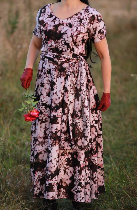 Красивое миди платье. Стан идеален. Бирки о составе ткани и о размере не имеет. Ориентировочно подойдет на размер М – небольшая Л, но лучше смотрите на замеры. Замеры: От плеча до плеча - 35 см Полуобхват груди (ширина под подмышками) – 47 см Полуобхват талии (в самой узкой части талии) – 42 см Длина рукава от плеча - 17 см Полуобхват бедер – свободно Длина - 126 см