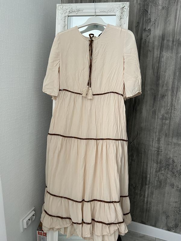 Нежное длинное платье с воланами романтичное летнее платье персиковое платье длинная