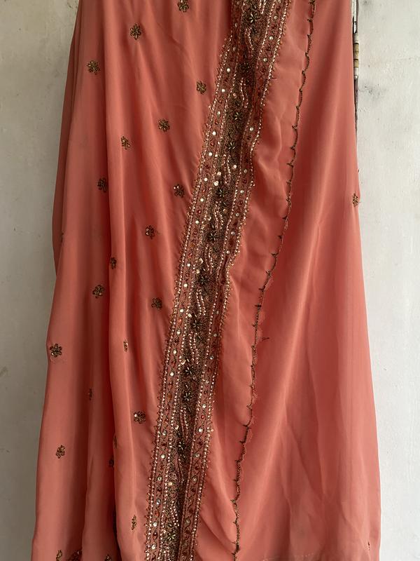 Шифон вышит пайетками и бисером, не тяжелый, без дыр и пятен. Можно заново обработать конец. Ширина длина стандартные