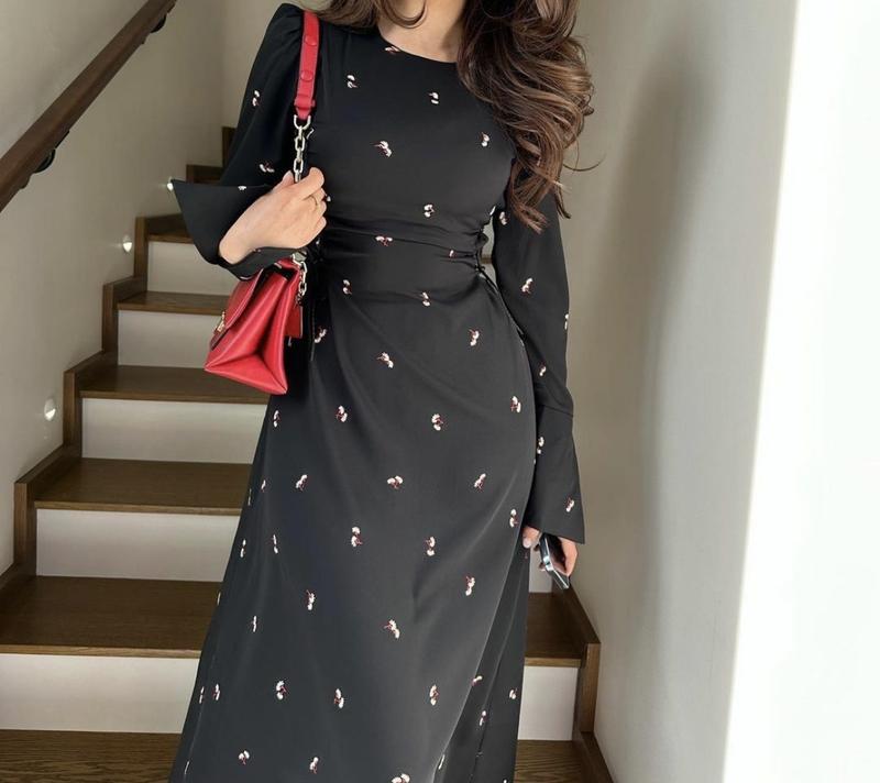 Черное платье Сбоку есть завязки для регулировки талии
