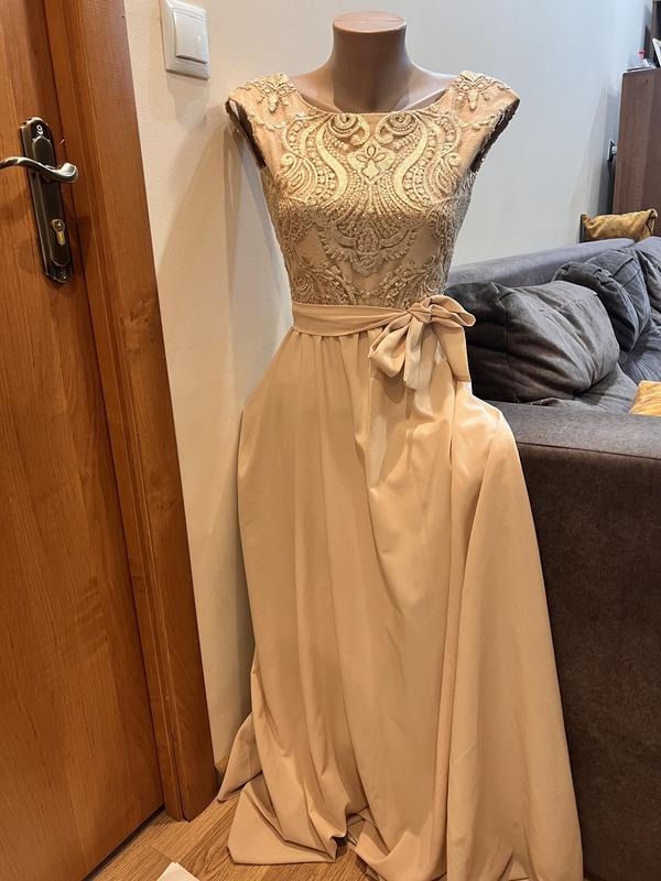 Бежевое платье золотое платье длинное платье нарядное платье