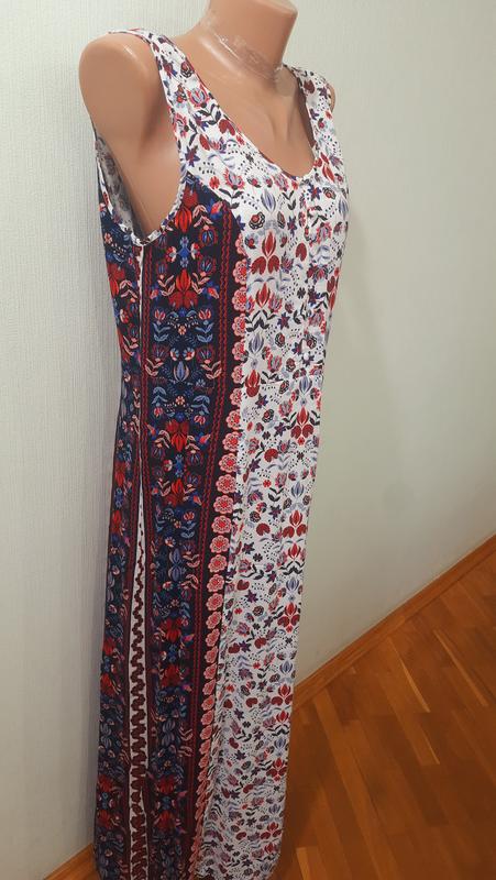 Новейшее оригинальное летнее платье на девушку 48р. Длина от плеча до низа платья 138см, ширина подмышками 47см, талия 42см, бедра 54см, ширина низа платья 67см.