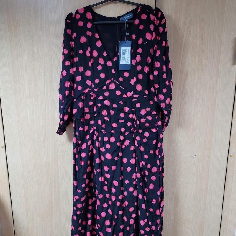 Длинное платье на тонкой дышащей подкладке,сзади змейка,под грудью кокетка,внизу слева разрез.Черное с светло-красным. Ог 98, талия 84, Об 106, рукав 52, длина по спинке 129.