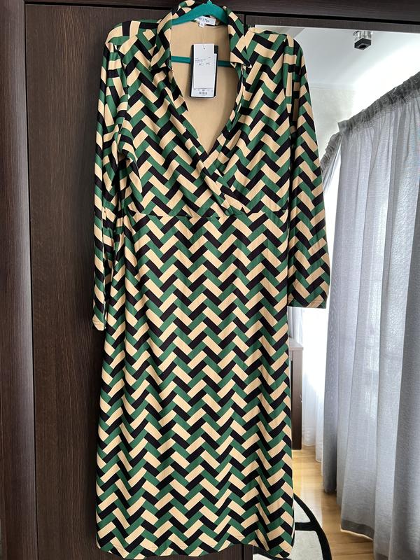 Новое платье. Купленное за рубежом, не подошел размер. Очень приятный на ощупь, под пояс. Длина 120, ПОГ 52, ПОБ 55, ПОТ 46, длина рукава 63.