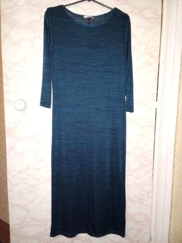 Платье длинное, стрейчевое, рукав 3/4. Пог 45 см, длина 120 см. На свету переливается. Бирка со составом срезанная.