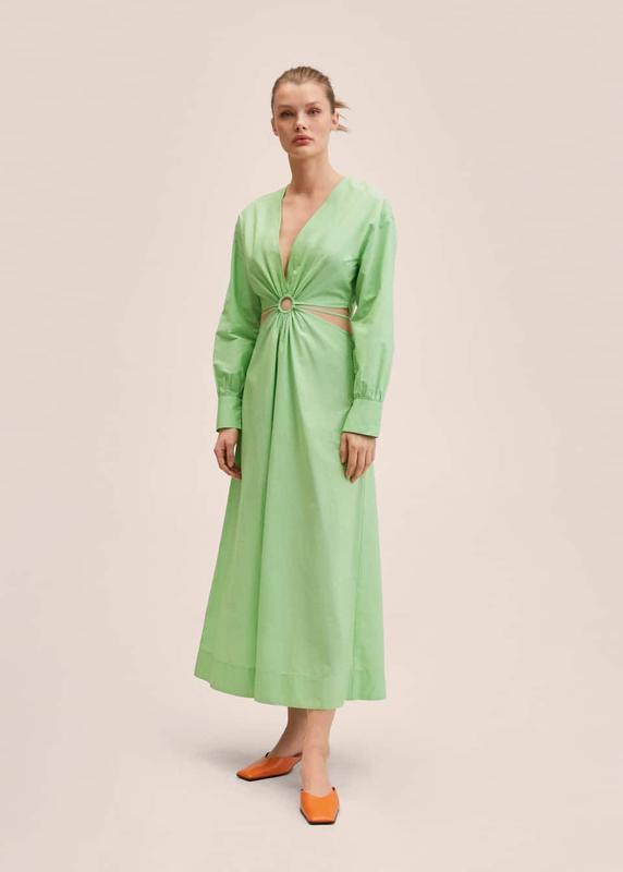Mango Іспанія XS розмір в наявності 100% бавовняна тканина. Довга модель. V-подібний виріз Декоративне кільце, довгий рукав. Бічна застібка-блискавка. Зав'язування ззаду